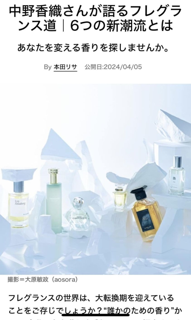「婦人画報」5月号フレグランス特集の巻頭でインタビューを受けた記事が、ウェブ版に転載されました。こちらです。転載、早いですね…。