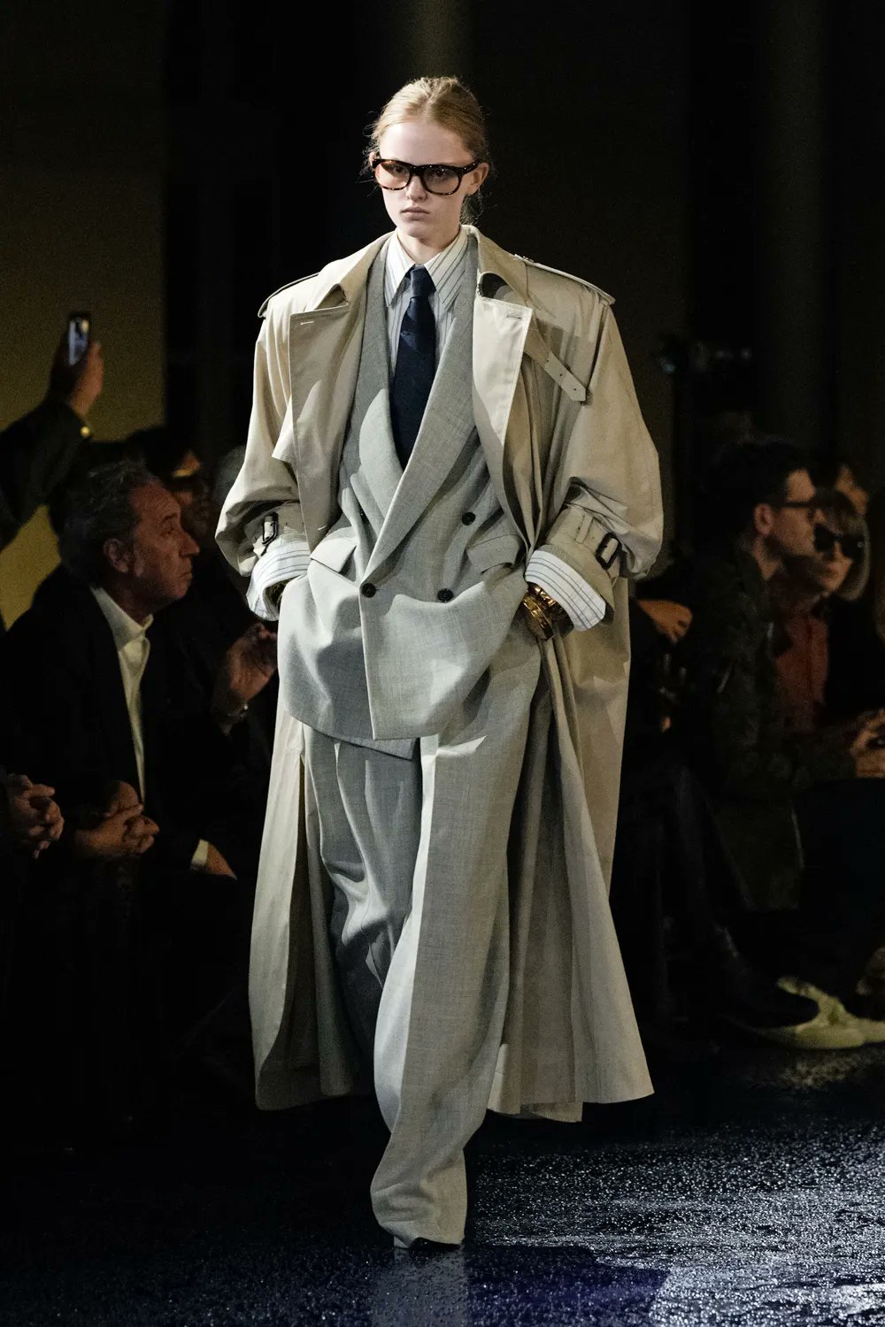 True to his enduring philosophy that fashion must show respect for everyone involved, Cucinelli demonstrated his values in action by gently placing coats over the shoulders of the lightly dressed models on stage — followed by Ken Watanabe doing the same. It was a gesture of warmth and grace that touched everyone present.