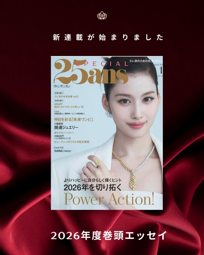 Books and Magazines / 書籍・雑誌 Essay / エッセイ prevnext 「25ans」で新連載が始まりました 「ロイヤルの肖像」 2025年11月29日「25ans」で新連載が始まりました。2026年度の巻頭エッセイ「ロイヤルの肖像」。第1回は、生誕100年を迎えるエリザベス女王です。 毎回、世界のロイヤルメンバーをお一人ずつ、ご紹介していきます。 2025年11月29日/0 コメント/作成者: Kaori https://www.kaori-nakano.com/wp-content/uploads/2025/11/814793d2756826f0ddd0cd210ee85ac1.jpg 1350 1080 Kaori http://www.kaori-nakano.com/wp-content/uploads/2021/06/logo-1.png Kaori2025-11-29 05:27:322025-11-29 05:29:00「25ans」で新連載が始まりました 「ロイヤルの肖像」