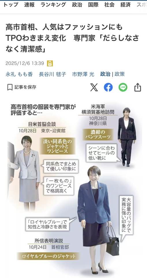 高市首相のファッションにつき、産経新聞からインタビューを受けました。記事はこちらです。