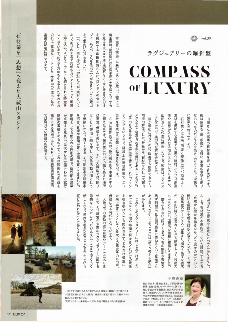 北日本新聞「ゼロニイ」2月号、「ラグジュアリーの羅針盤」Vol. 39は大蔵山スタジオについて書きました。