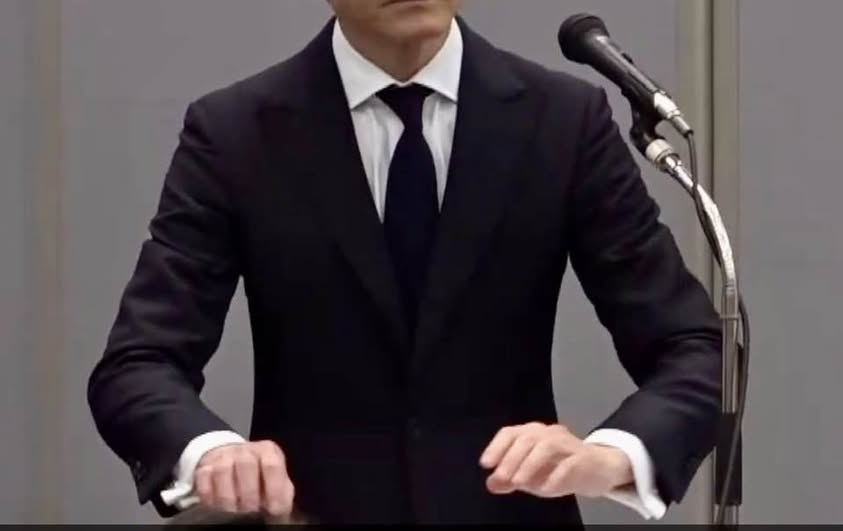 今回の会見で注目されたのは、黒無地のスーツに白シャツ、黒タイという、いわゆる「謝罪の定型」を踏襲しながらも(ダークグレーという選択もあります)、ピークドラペルのタイトなスーツにダブルカフスのシャツ、カフリンクスという、エリートのにおい強めの完璧なスーツが選ばれていた点。