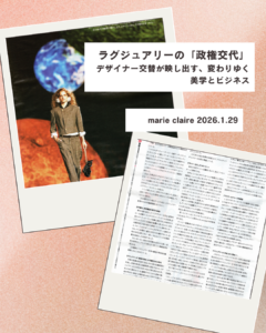 maire claire 2026.1.29でラグジュアリービジネス業界における近年の激しすぎるデザイナー交替をどう読むか?という記事を書きました。