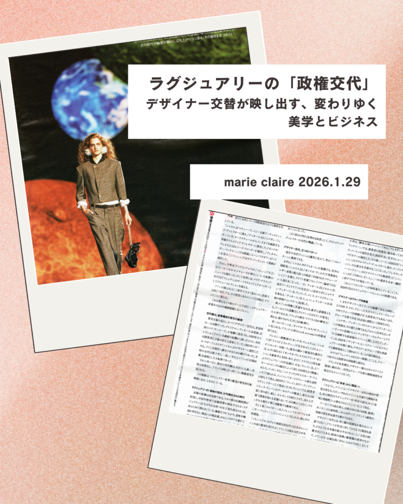 maire claire 2026.1.29でラグジュアリービジネス業界における近年の激しすぎるデザイナー交替をどう読むか?という記事を書きました。
