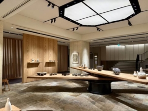 中央の舞台は約3週間ごとに更新され、工芸・ファッション・音楽・トークが交差します。SUZUSAN、CFCL、SETCHU、T&Tによる奄美泥染め、淡水パールの新解釈──日本と世界を横断するキュレーションは「陳列」ではなく、美意識の再編集です。 (SETCHUの鮎の香水もここで体験できます)