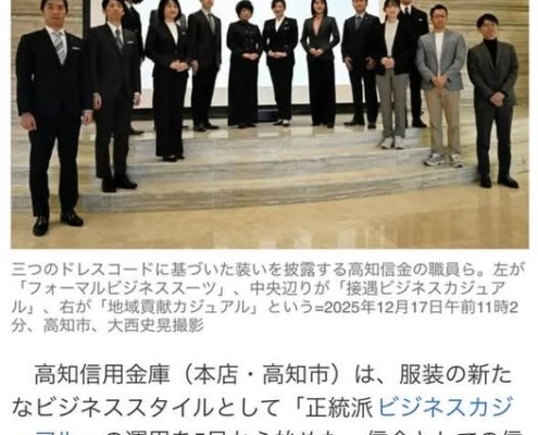高知信用金庫で2022年より展開しているビジネスウェア創造プロジェクト、昨年12月の記者会見が今年1月の朝日新聞でも紹介されました。こちらです。